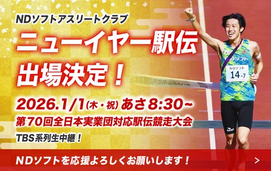 エヌ・デーソフトウェア株式会社(本社:山形県南陽市、代表取締役社長:松山 庸哉)は、当社が運営するNDソフトアスリートクラブが2026年1月1日(木・祝)に開催される「第70回 全日本実業団対抗駅伝競走大会(ニューイヤー駅伝 2026)」に出場し、新年のスタートを切ることをお知らせいたします。