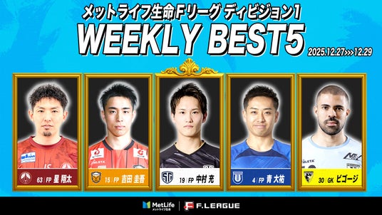 12月27日(土)~29日(月)に実施したメットライフ生命Fリーグ2025-26 ディビジョン1 第22節におけるベスト5をお知らせいたします。