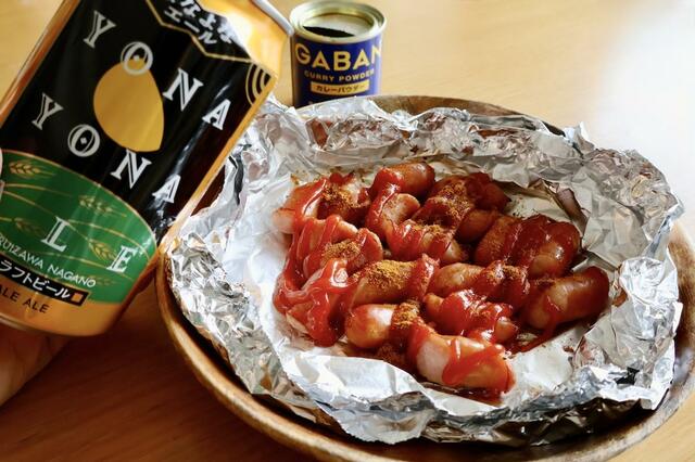 まずは一番手軽なところから。 ウインナーを一口サイズにカットしてオーブントースターで焼き、最後にケチャップとカレーパウダーをかけます。