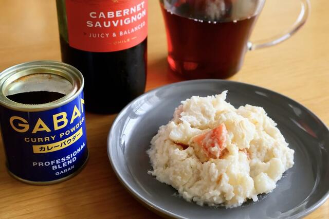 次は、作り置き率の高いポテトサラダ。あまっているポテサラにGABANのカレーパウダーをほんの少し加えるだけで、印象が一変しますよ。