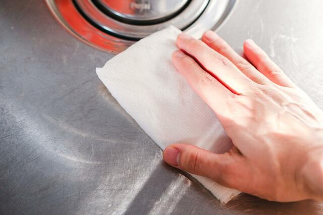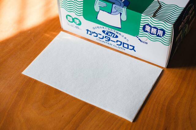 カウンタークロスというと、ピンクやグリーンなど「いかにも業務用」な色が多い印象ですが、こちらはホワイト。キッチンに置いても目立たず、自然に馴染んでくれます。