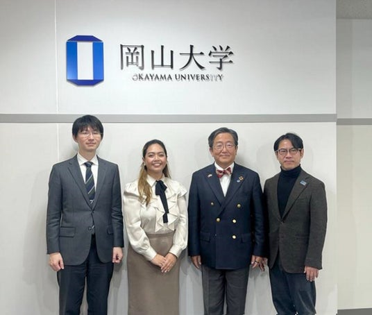 国立大学法人岡山大学(本部:岡山市北区、学長:那須保友)は2025年11月21日、本学と国連貿易開発会議(UNCTAD)が共同で運営する2025年度「途上国からの若手女性研究者のための共同研究・研修コース:Young Female Scientist Programme in Japan」により来日した若手女性研究者: Loraine Kay D. Cabralさん(フィリピン出身・フィリピン科学技術省健康推進評議会科学技術フェローII)が那須保友学長を表敬訪問しました。
