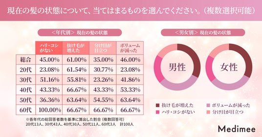 今回の調査では、年代や性別を問わず、多くの人が髪に関する悩みを抱えていることが明らかになりました。