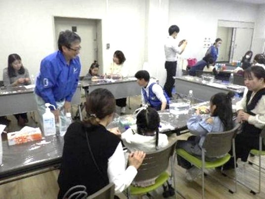 実験テーマは、昨年度大人気だった「スライムで遊ぼう」、「入浴剤を作ろう」に加えて、「星箱を作ろう」、「浮沈子を作ろう」の4テーマを実施しました。小学生を中心に18人の子どもたちとその家族が参加し、グループに分かれて順番にすべてのテーマを体験しました。子どもたちはどのテーマも真剣な表情で取り組み、ワクワクする実験を通して身近な科学に触れました。会場は笑顔にあふれ、参加者の和やかな親睦の時間となりました。