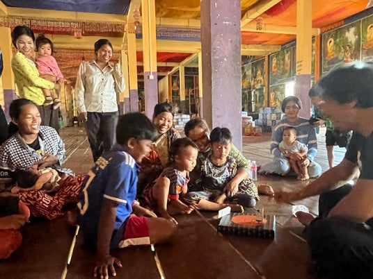 特定非営利活動法人なかよし学園プロジェクト(代表:中村雄一/千葉県松戸市)は、2025年12月29日、カンボジア王国シェムリアップ州Chi Kraeng(チークレン)にある避難民収容寺院にて、国境地帯の空爆被害等を背景に避難を余儀なくされた人々に対し、緊急の難民支援活動(教育支援・食料支援)を実施しました。