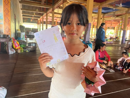 そして、この事実を知った多くの人々が、平和のためのアクションを取ってくれることを願っています。日本の子どもたち、本当にありがとう。皆さんの心優しい思いは、カンボジアの人々の心に強い勇気と希望を与えました。本当に感謝します。」