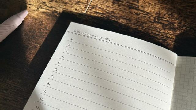 そして、このノートの末尾にあるのが、お気に入りのコーヒーとお菓子の記録を残せる欄。