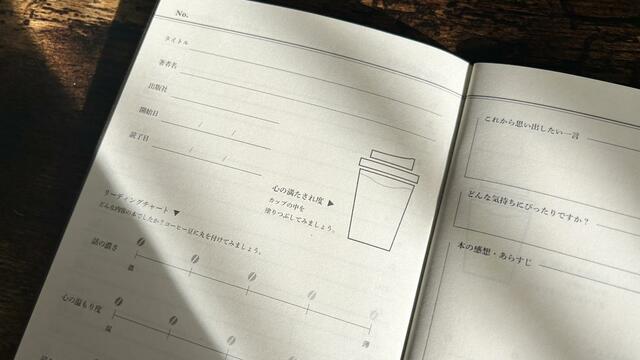 「コーヒー」のノートには、タイトルや感想のほかに、コーヒーの味わいに見立てたリーディングチャートが付いています。読了後のうまく言語化できない思いも、感覚的に記録に残せます。