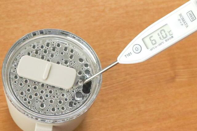 フタをした状態で放置したところ、61℃になっていました。