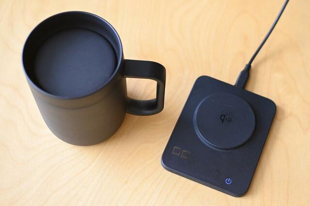 ワイヤレス充電の技術を応用して、セラミックヒーター内蔵のマグカップをじんわりと温めてくれます。