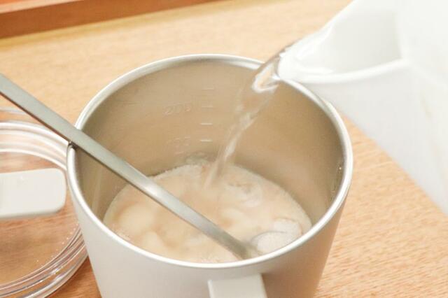無印良品の蓋付きマグなら、お湯の量がパッと見てわかります。これなら迷わずにドリンクがつくれそう!