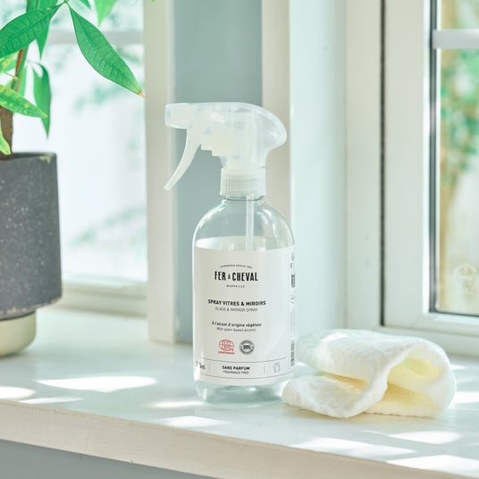 植物由来のアルコールを配合したフェール・シュヴァルのガラス&ミラースプレーは、油分や汚れをはがれやすくする力に優れ、あらゆるガラス面に拭き後を残さず輝きを与えます。