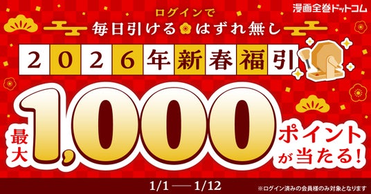 株式会社TORICO(本社:東京都千代田区、代表取締役社長:安藤拓郎)が運営するECサイト「漫画全巻ドットコム」にて、新春福引きキャンペーンを2026年1月12日(月) まで開催いたします。
