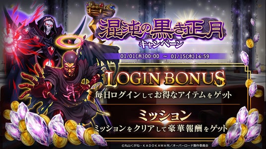 1/1よりイベント『混沌の黒き正月』を実施!召喚では『★5【暗黒企業の上司】モモンガ』、『★5【暗黒企業の黒幕】るし★ふぁー』が登場します!