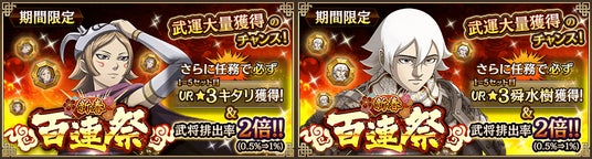 UR武将排出確率が通常時の2倍にUPします!