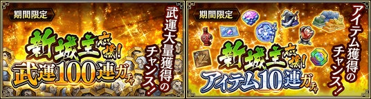 人気武将が獲得できる3つの新城主応援!武将ガチャを開催!