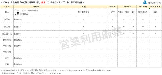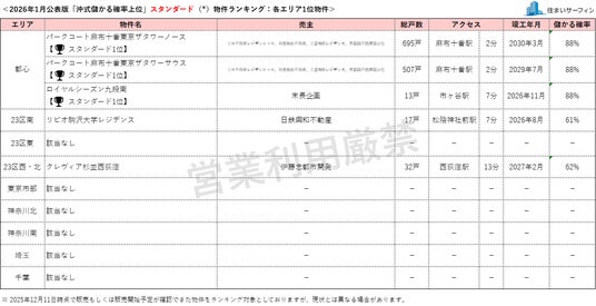 1月公表分は、2025年12月11日時点で販売もしくは販売予定が確認できた物件を対象としています。
