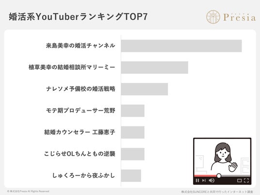 - 「最も好きな婚活YouTubeチャンネル」1位は「来島美幸の婚活チャンネル」