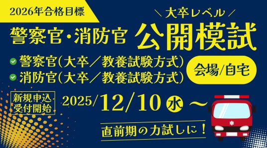 警察官(大卒/教養試験方式)・消防官(大卒/教養試験方式)の採用試験に対応!