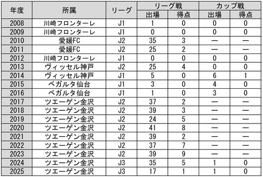 J2リーグ 341試合(45得点)