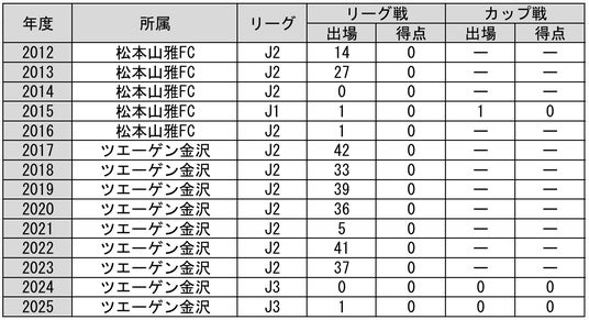 J3リーグ 1試合(0得点)