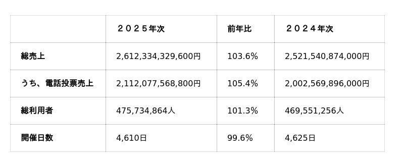 うち、電話投票売上: 2,112,077,568,800円
