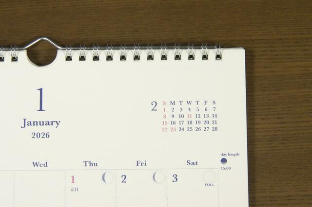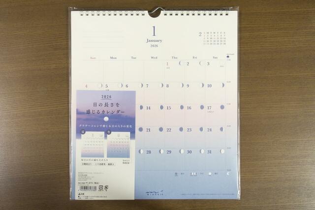 私の2026年壁掛けカレンダーは、ミドリの「日の長さを感じるカレンダー」に決まりました。