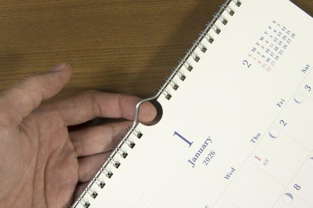 1か月ごとに破いていくタイプではなく、めくって使えるリングタイプ。