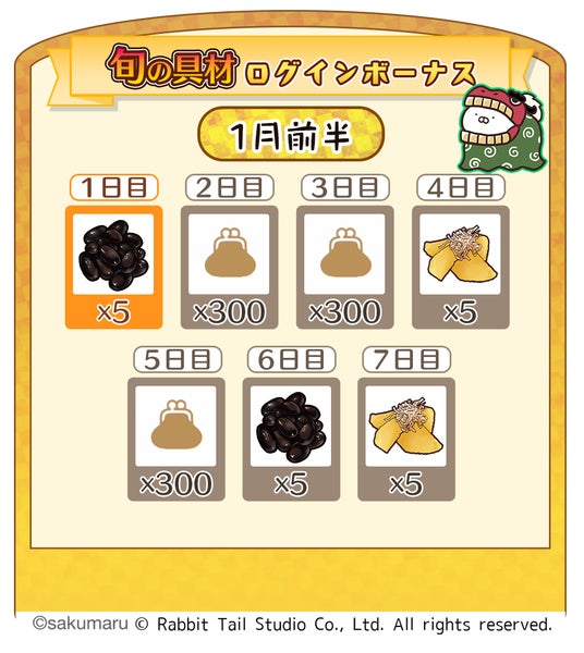 【旬の具材ログインボーナス(1月前半)】