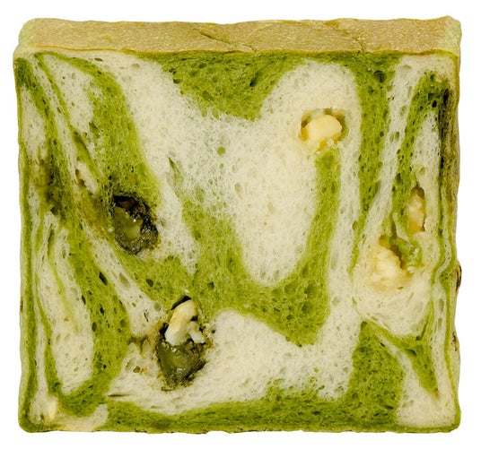 抹茶の深い旨味とほろ苦さを、ホワイトチョコのやさしい甘さが引き立て、和と洋が美しく調和した贅沢なショコラ食パンです。