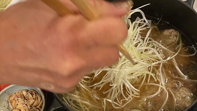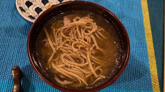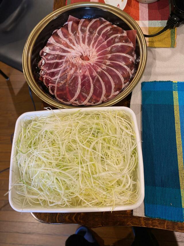 ネギの千切りをどさっと入れてガッツリ食べる。お汁も美味しいのよ。