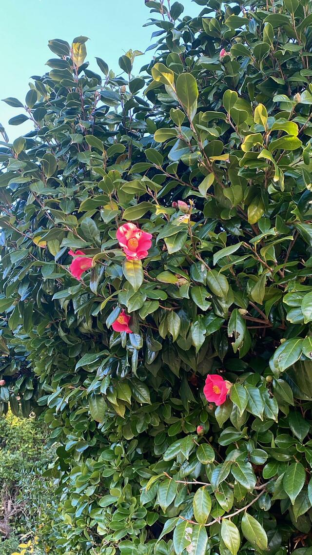 サザンカが咲いている。なんだか暖かな日が続くけど、冬なんだね。風邪などに注意!
