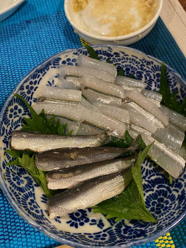 ままかり(酢漬け)、サヨリの刺身。