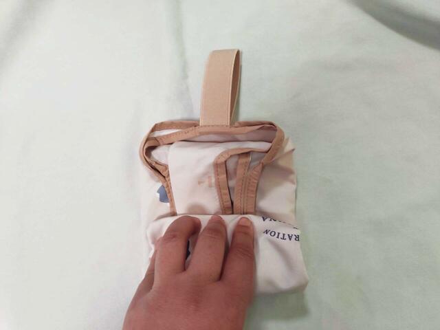 畳む時は、両サイドを織り込み、くるくる丸めてゴムで留めたら完成です。