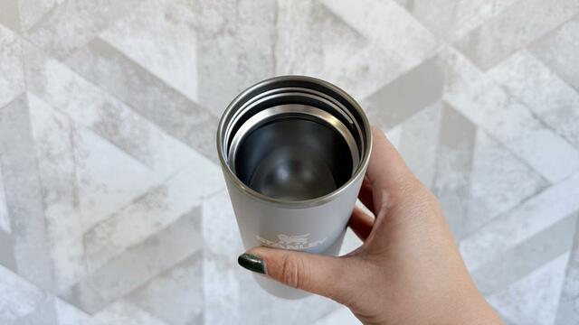 真空断熱構造で、ホットにもアイスにも対応できます。試しにホットコーヒーと冷たいルイボスティーを入れて持ち歩いてみましたが、5時間ほど経ってもドリンクの温度はしっかりキープされていました。