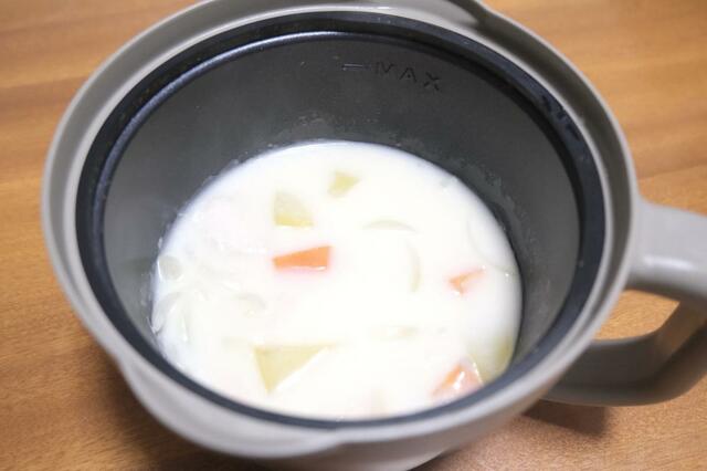 マグ型なので調理後はそのまま食卓に並べられ、盛り付けの手間が省けるのも便利でした。
