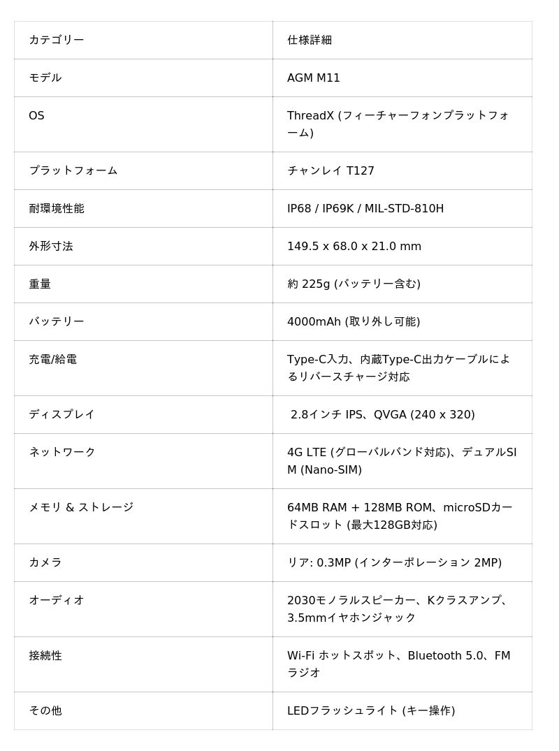 AGM M11のより詳しい製品紹介、スペック、ユーザーレビューなどは、AGM日本公式サイトの特設ページをご覧ください。