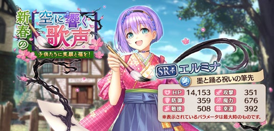 イベントクエストで入手できる『こしらえ笛太鼓』を集め、SR+エルミナ【墨と踊る祝いの筆先】を手に入れましょう!