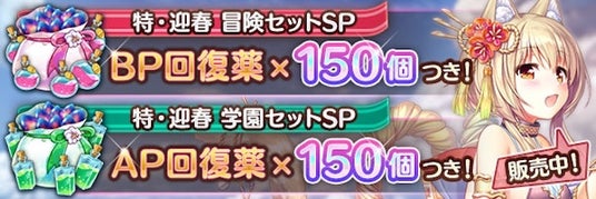 フレアライトとAP回復薬がセットになった、2種類の『特・迎春学園セット』の4種類のお得なセットが登場しました!