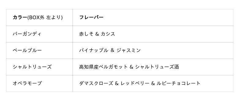 幸せが続くようにと願いを込めたバレンタインアイテムをラインナップ。軽やかなスフレ生地にガナッシュを重ねたスフレショコラは異なる味わい3種類をご用意。「ノワール」はビターチョコレートにオレンジの香りを添え、「ヴェール」はコーヒーとピスタチオの濃厚な余韻をお楽しみいただけます。「ルビー」はルビーチョコレートとベリーの酸味を組み合わせました。さらに、リップ型のチョコレート「レーブル コロレ」は4つの味わいを一箱に。ダマスクローズとレッドベリー、ベルガモットとシャルトリューズ酒のガナッシュ、パイナップルとジャスミン、赤しそとカシスが、一粒ごとに凝縮されています。また、トンカ豆が香るテリーヌショコラは、低温で焼き上げたなめらかな口どけにクランチの食感を添え、贈り物にもふさわしい仕上がりです。