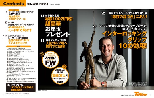 技術特集はグリップ、「インターロッキング」を考察します。タイガー・ウッズ、松山英樹、スコッティ・シェフラーに日本の女子プロと、かつては非力な人向き、と言われた小指を絡めたこの握り方が現在、主流となっています。どんな効能があってどんな人に向いているのか中井学の解説でお楽しみください。