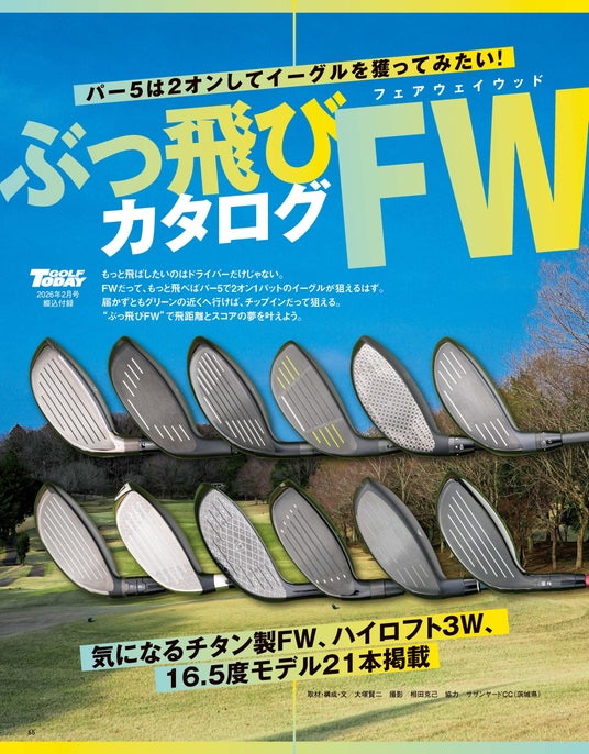 綴込付録は「ぶっ飛びフェアウェイウッド」を特集。いまドライバーの最新技術はフェアウェイウッドにまで波及しました。つまり、やさしく飛距離自慢のフェアウェイウッドが完成したということです! この新しいフェアウェイウッドならパー5で夢の2オンが狙えるかも!