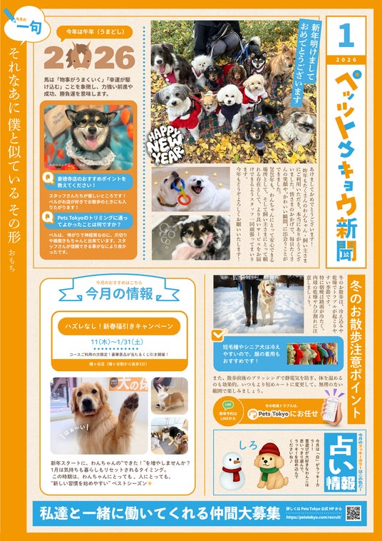 Pets Tokyo株式会社(本社:東京都千代田区、代表取締役: Raymond Chen)は、ペットとの毎日を豊かにする情報をお届けするフリーペーパー「ペッツトウキョウ新聞」1月号を発行いたしました。