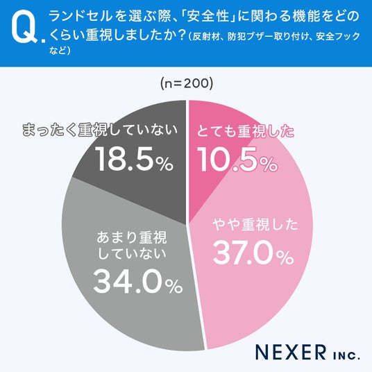 続いて、ランドセルを選ぶ際に安全性に関わる機能をどのくらい重視したかを調査しました。