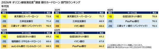 オリコン株式会社(本社:東京都港区 代表取締役社長:小池 恒、略称:オリコン)は、グループ会社である株式会社oricon MEが、実際のサービス利用者を対象に第三者の立場で実施した『カードローン』についての顧客満足度調査の結果を、2026年1月5日(月)14時に発表いたしました。