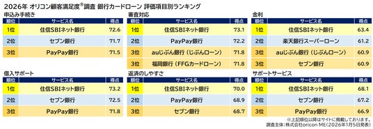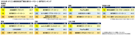 2026年 オリコン顧客満足度(R)調査 銀行カードローン