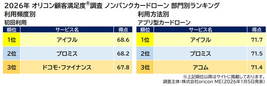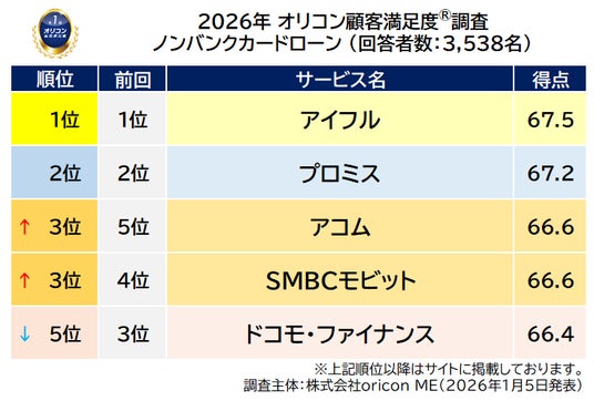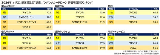 2026年 オリコン顧客満足度(R)調査 ノンバンクカードローン