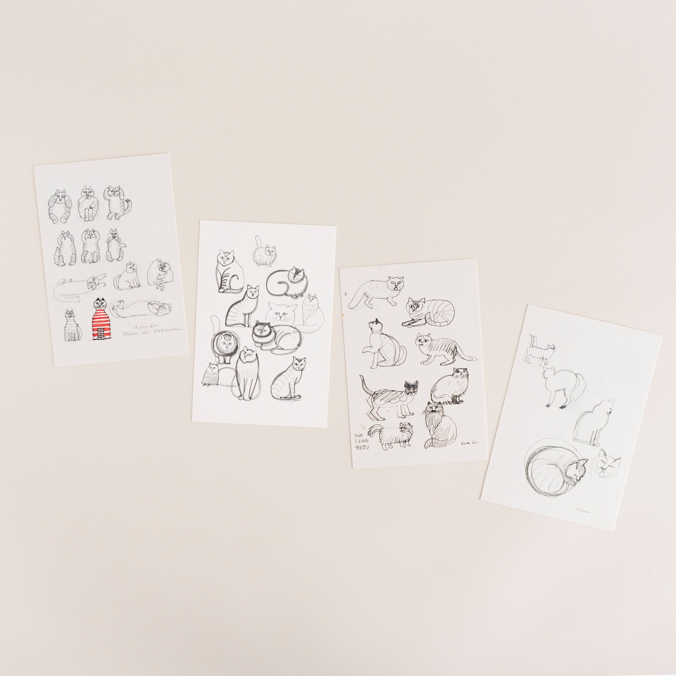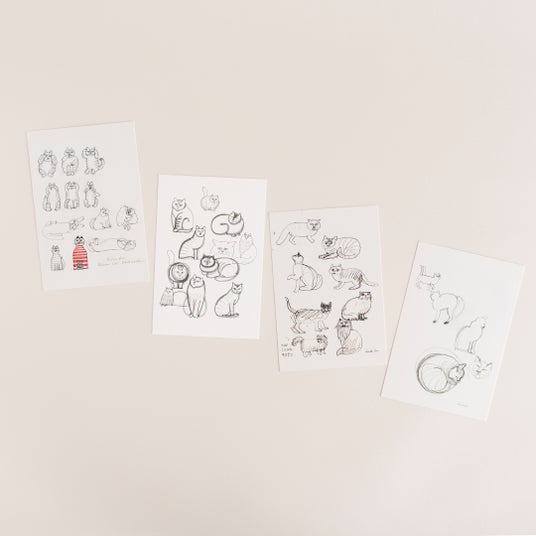 リサが描いたねこのスケッチを、A4サイズのカードにしました。壁に貼って楽しむのはもちろん、額装して飾るのもおすすめ。展示の余韻を、お部屋の中でも感じられる一枚です。