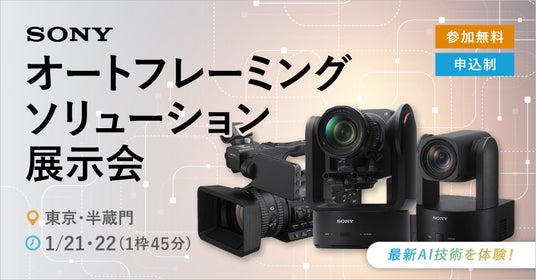 株式会社システムファイブ(本社:東京都千代田区、代表取締役社長:小川 行洋)は、2026年1月21日(水)・22日(木) に「ソニー オートフレーミングソリューション展示会」を東京・半蔵門にて開催いたします。