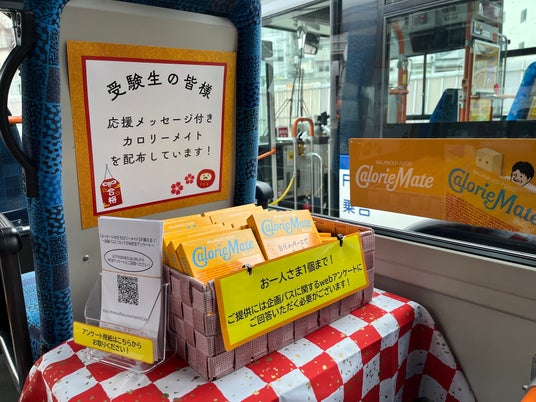 なお、昨年に続き、大塚製薬株式会社(本社:東京都千代田区、代表取締役社長:井上 眞|以下:大塚製薬)とのコラボレーション企画で、バランス栄養食「カロリーメイト」を「いっしょにガンバっす」内でプレゼントするほか、バス路線沿線の受験生へも配布します。
